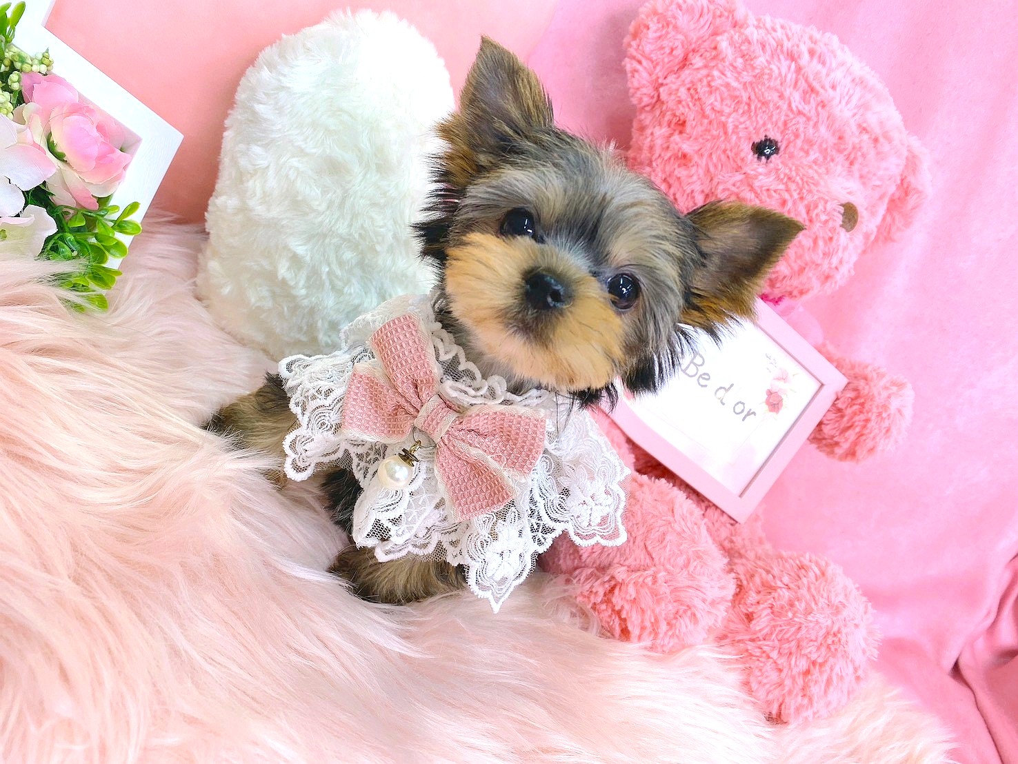 ヨーキー好きの方に人気の、飾り毛を伸ばしてトップノットにリボンもとっても似合いそうな子です💕