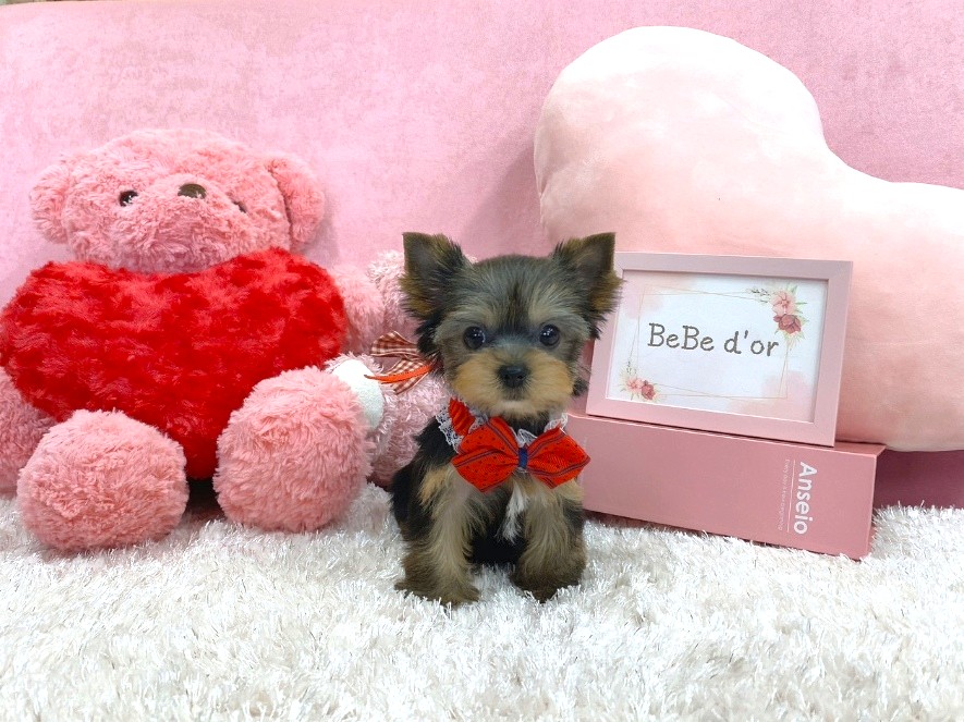 ヨーキー好きの方に人気の、飾り毛を伸ばしてトップノットにリボンもとっても似合いそうな子です💕